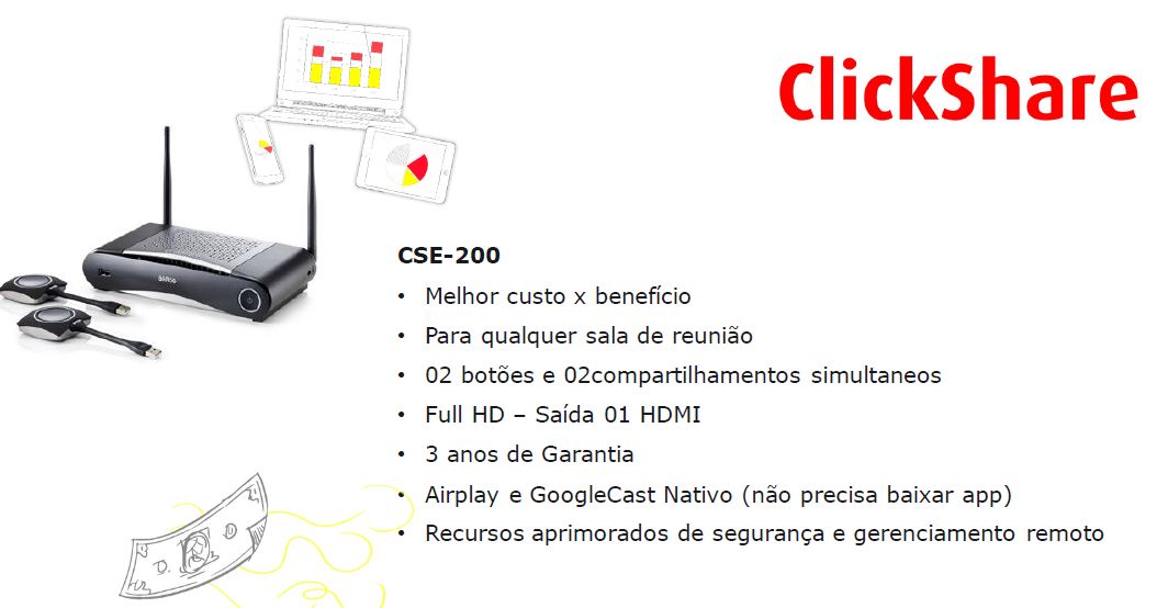 O wePresent da Barco é uma solução de baixo investimento pois não há a necessidade de substituir os equipamentos já existentes como: Projetores, Telas Interativas ou Monitores. Além de eliminar a necessidade de cabos espalhados; o wePresent uma vez conectado permite que os alunos realizem suas apresentações de qualquer dispositivo, trazendo o conceito BYOD para dentro da sala de aula