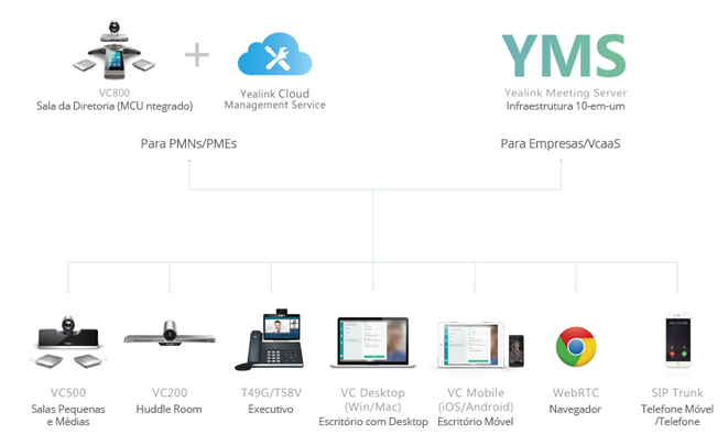 Os requisitos gerais para as soluções de Videoconferência Yealink incluem:
